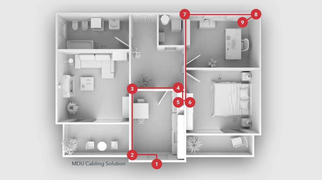 Stuer har ofte mange hjørner og vinkler, hvor man må tilpasse optisk fiber. OFS EZ-Bend fiber kan bøyes opp rundt hjørner opp til 50 ganger med ubetydelig signaltap. Illustrasjonen ovenfor viser en perfekt Invisilight-løsning.